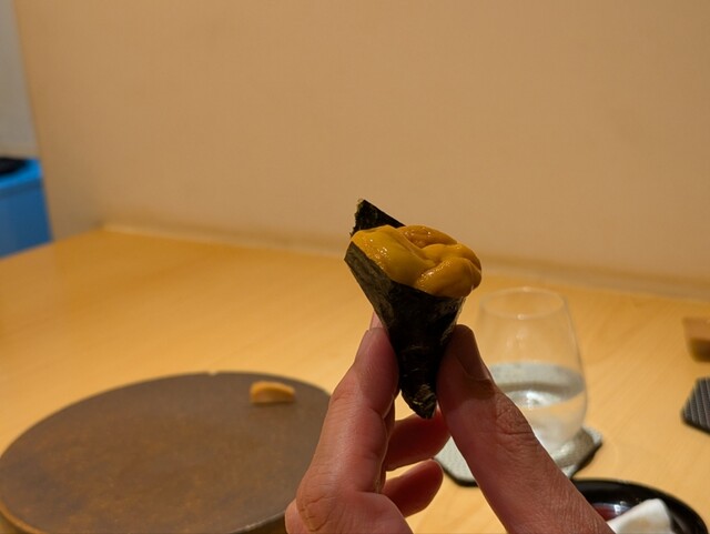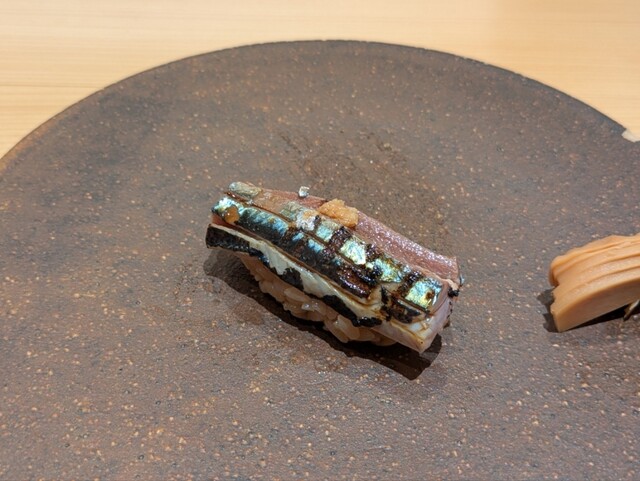 つまみとお鮨が交互に出てくるスタイルです。何を食べても美味しかったですが、お鮨は小肌、中トロ、秋刀魚、ウニなどが特に美味。つまみは、甘鯛の松笠焼きに山芋と胡椒の実が乗った物がいただいていて楽しかったです。