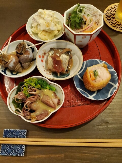 昆布締め ハムカツ 鮑 ポテサラ お芋 など