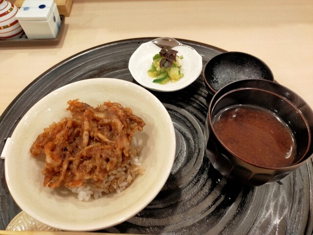 かき揚げの小天丼と宍道湖の蜆の赤出汁のお食事