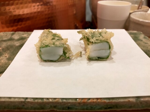 超低温揚げの穴子や穂先と根元を別に揚げるアスパラやスイーツみたいな肥後紫等々、食感がやばい程に楽しい。