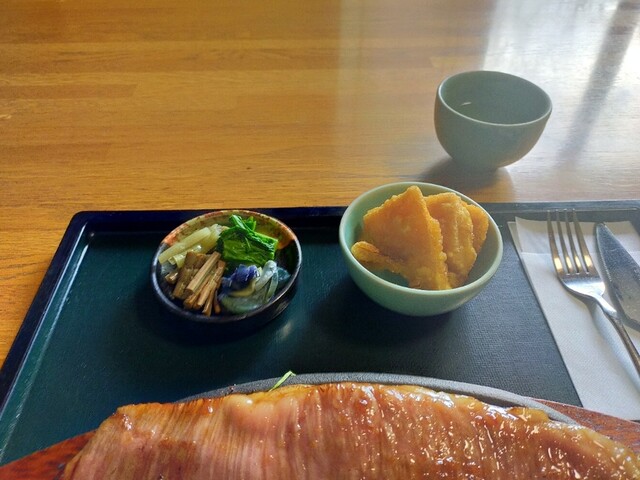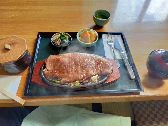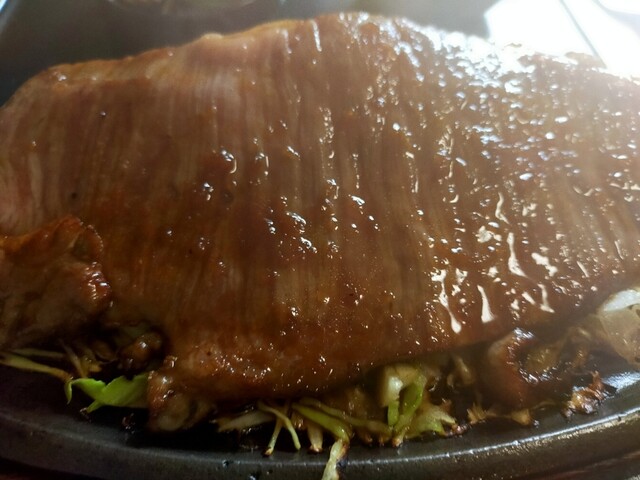 好みの分かれる所ですが、お肉が薄切りで鉄板が超熱々なのですぐに肉に熱が伝わり「ミディアムレア」ではなくなりましたಠ︵ಠ