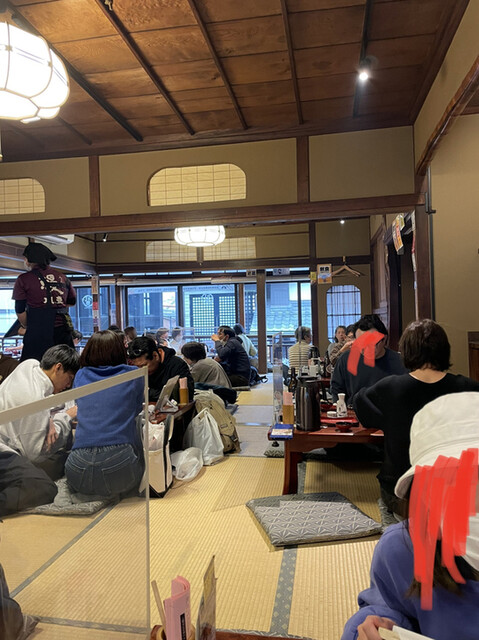 入店後15分くらい待ってから席に着きました。1階でも2階でもどちらでもよかったのですが2階へ案内されました。急な階段を登るとそこは昔の風情が残る畳の席でした。1階も趣がありますが、2階も歴史を感じる内装で良かったです。
