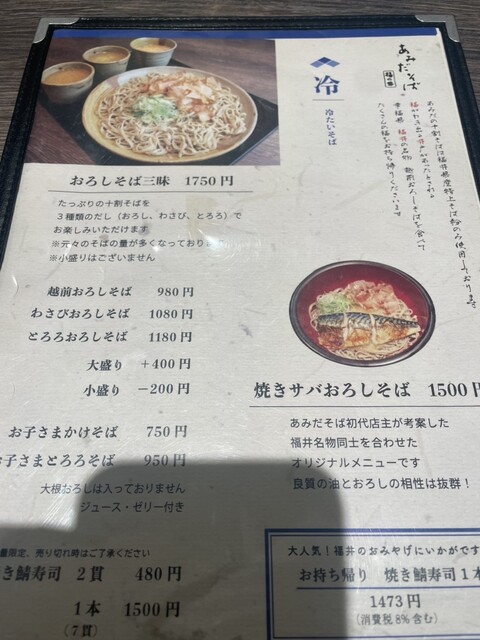 テニス仲間に福井へ行くなら越前おろしそばを食べたほうが良いと勧められて、知り合いにここのお店を紹介されて訪問しました。なんと百名店で、期待がもてます!