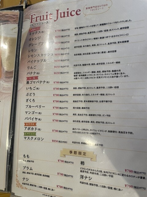 るるぶに載っていた、フルーツパーラー果樹園さんへ初めて訪問しました。フルーツのウメダさんが正式名称なのでしょうか。1階が果物やケーキを販売しているお店で2階が喫茶店でした。