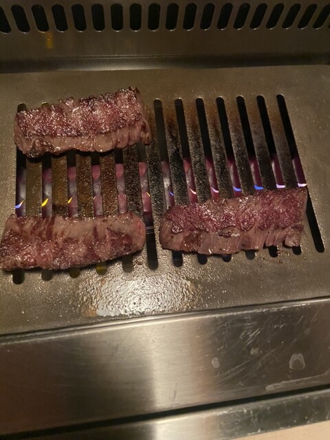 焼肉は店員さんが、程よく焼いてくれます。サービス満点。鉄板も一品焼き上げたら交換。油が残りません。
