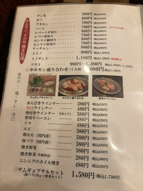 メニューは豊富ですが、はじめてでよくわからないので、多来多来(たくたく)コース5500円を選択しましたが、これがボリュームお得感満載。ホルモンとタンが入ってないコースなんで好きな方は別コースを。