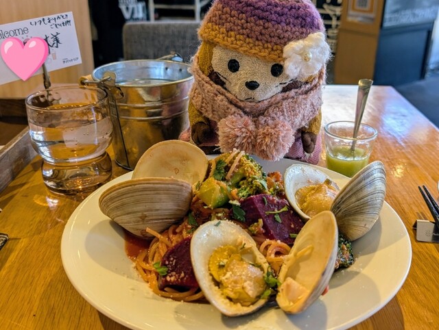 パスタも前回はトマトソースでしたが、今回はビーツを使ったソースだそうで、具材も大きな白ハマグリにビーツ、ブロッコリーやカリフローレ、紅大根…と冬野菜がゴ〜ロゴロ(*´Д`)♡