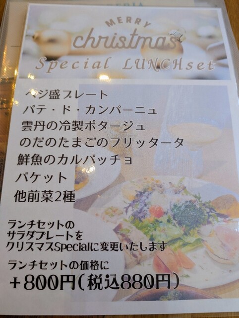 この日は特別に、いつものランチのサラダプレートが+800円で豪華なクリスマス仕様に✩.*˚