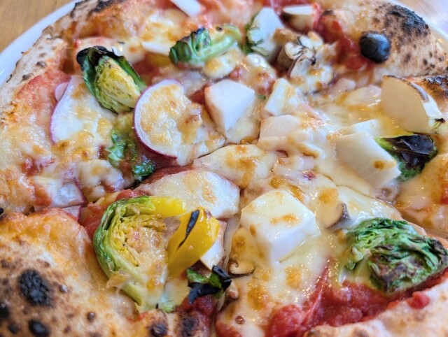 ピッツァも釜焼きされているので、生地が香ばしく、モチモチでとっても美味しー(,,>᎑<,,)♡