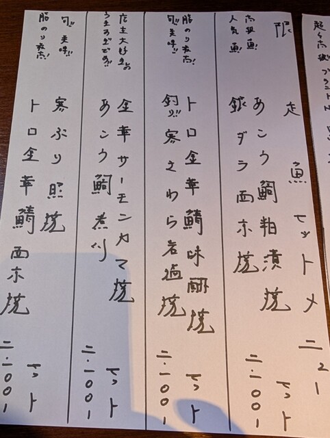 メニューはお魚単品、お肉×お魚、お魚×お魚の組み合わせで1800円~2900円の定食が数種類あります♪︎