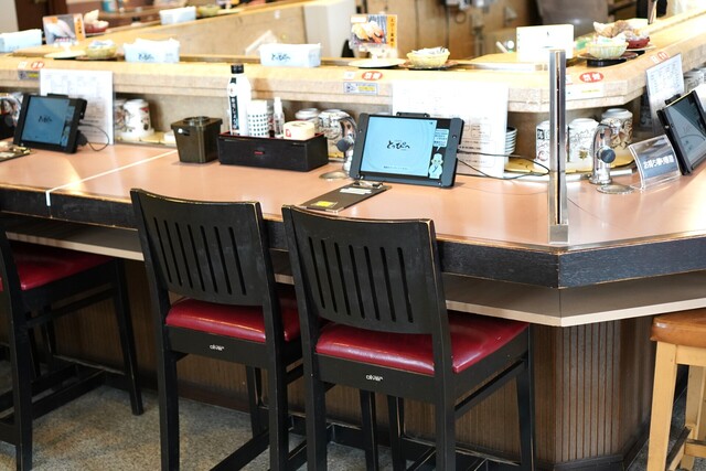 回転レーン上にお寿司は流れていませんし注文の紙はなく席上にはタッチパネルがありました