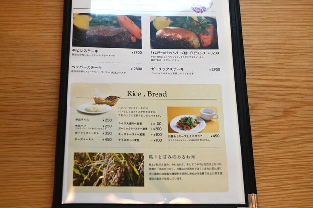 中にチーズだったかライスだったかが入ったハンバーグがあった気がしますが現在はありません