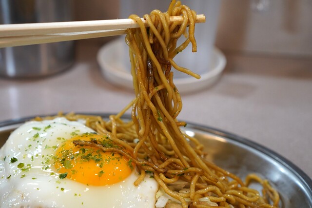 麺が2玉分に目玉焼きがのっています