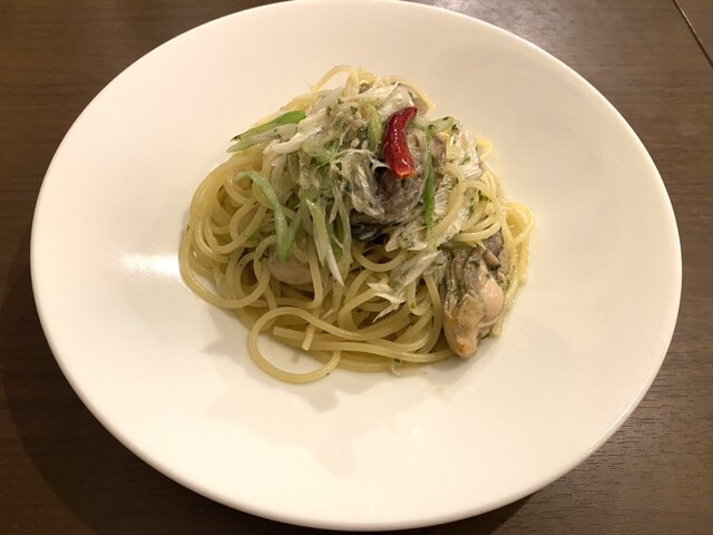 今日の夕飯は、家族とビストロカナリアさんに伺いました。夜のセットメニューの牡蠣と長ネギのオイルソース生スパゲッティを選びました。ドリンクは自家製ジンジャーエールで、別でガーリックトーストを頼みました。ガーリックトーストはソフトなバケットで食べやすいです、パスタは牡蠣がプリっとして、長ネギとの組み合わせもとても良く美味しいですね。デザートはシフォンサンドをいただきました。今日も美味しいです。