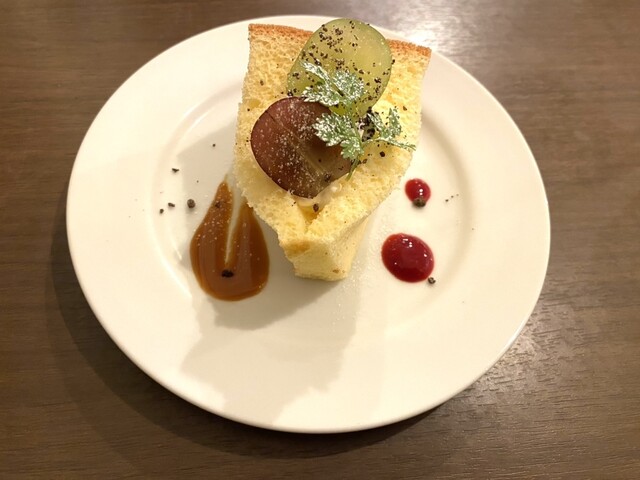最近行けていなかった、ビストロカナリアさんに久しぶりに伺いました。メニューを見ると、ランチパスタ新しいものに変わっています、オイルソースもトマトソースもそそられます。オイルソースを選択しました、少し長いネーミングです。提供されて先ずとても良い匂いがして絶対美味しい!と思います、食べるとやっぱり美味しい!アーモンドの食感が良い感じです、一気に食べ切りました。本日のデザートはシャインマスカットサンドシフォンケーキです。ドリンクは自家製ジンジャーエールと一緒にいただきました。美味しかったです。