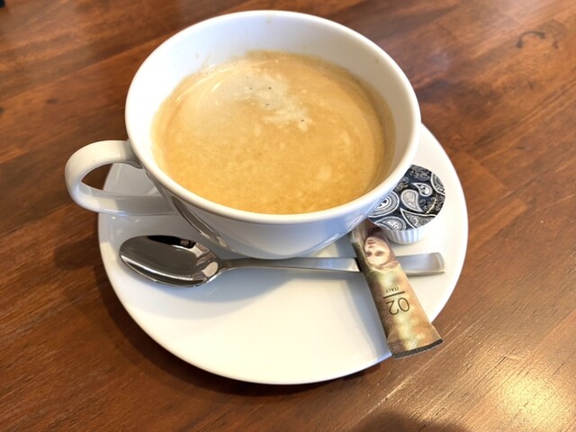 先ずサラダが出てきて彩り良く、味も美味しいです。そしてメインのビーフシチューオムライスは確かにビーフシチューとろとろで美味しいですね。デミソースの味も好みです。ラストはコーヒーと、デザートはブラウニーでとても美味しいです。また伺いたいと思います。