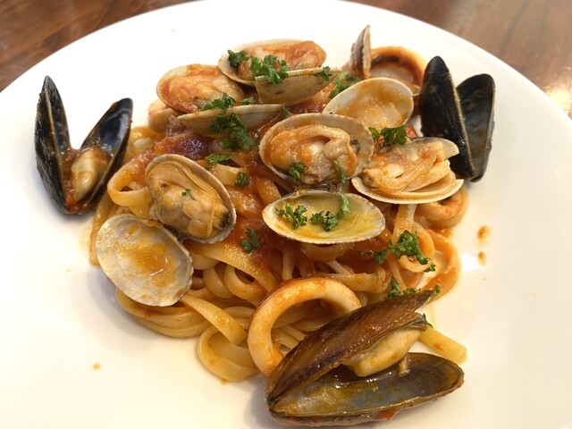お盆期間混んでいたので少し間隔が空いて久しぶりに伺いましたビストロカナリアさんです。この日は大好きなジェノベーゼをいただきました。少しマイナーチェンジしています、具材がジャガイモと小海老に変わっていて更に美味しくなりました。シェフより残念ながらジェノベーゼは今日で終わりですよーとの事でした。食べることが出来て良かったです。
