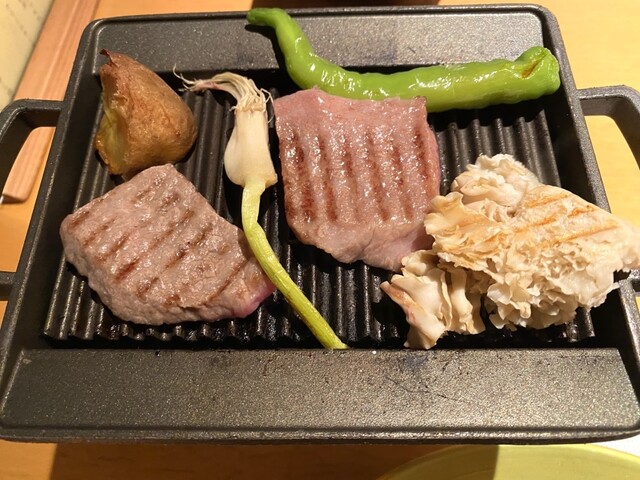 強肴=上州牛サーロインと赤城牛ザブトンの鉄板焼きです。どちらも肉の旨みが凄くて美味しいです!ご飯が進みます。