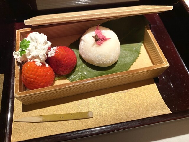 水菓子=桜大福、苺クリーム掛けで大福はとても美味しかったです。