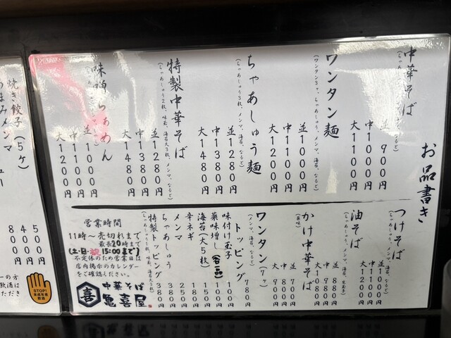 メニューを見て注文する後払い方式で、私はワンタン麺中盛り1100円➕小ライス150円=1250円をオーダー
