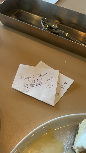 今回のシーズンスープはかぼちゃのポタージュで、巨峰とチーズのサラダも、栗のリゾットも美味しかったです!バースデープレートも可愛くて映えます✩バースデーメッセージも付けてくださって、相変わらず親切なスタッフさんに感動です、また行きます୨୧
