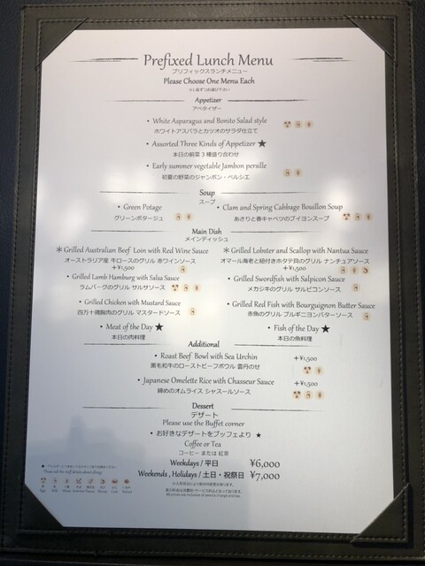 今回はメロン。非常に楽しみでした。一品一品のクォリティはとても高く、特にメロンのロールケーキはまさにメロン❗️メロンの食べ比べは大人気でサーブが間に合ってなくて3度目くらいに取りに行った時は、カラッポ〜。特に人気はクィンシーメロン。でも、まだ食べたことがなかったキンショーメロンは歯応えが初めてなのに甘味がとても良い。ただ、今回少し感じたこと、ランチの本日の魚料理の説明が、うちらはカレイと言われたと思うんだけど、お隣のテーブルの方には真鯛と言っていたような気のせい?真鯛なら食べたかったな〜と言うパートナーの言葉に少し凹み、