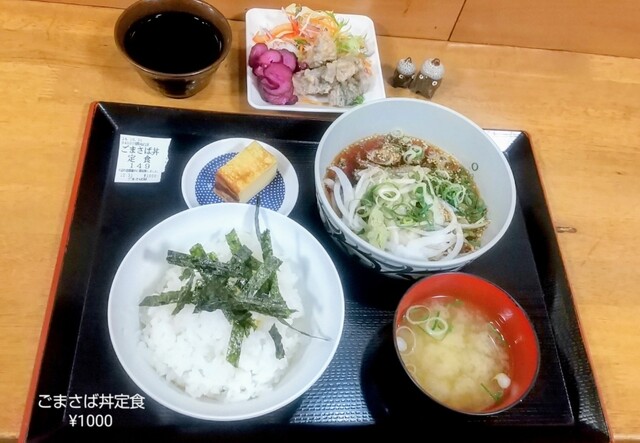 「とろろ牛タンと牛カルビ焼肉セット」¥1280をいただきました。スープ、今日は具たくさんのコムタ...