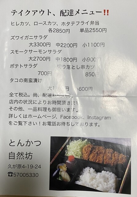 テイクアウトメニュー(2025年9月21日撮影)