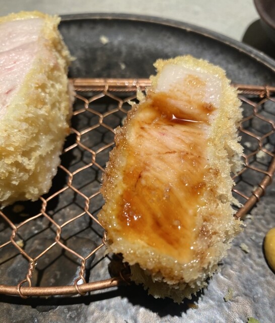 仕入れは茨城県坂東市の山西牧場で育てられる、"飲める脂"と評されるほど濃厚な旨味と口溶けの良い脂が特徴のブランド豚です。飼料にこだわり抜いた最高品質の豚肉