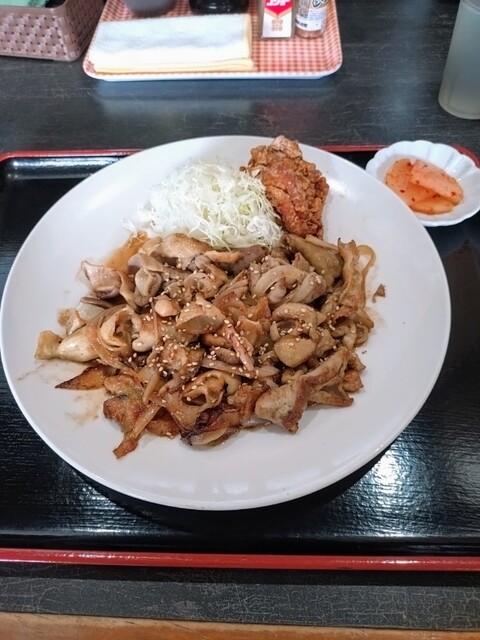 本日のランチ(ホルモン炒+唐揚げ)を食べました。
