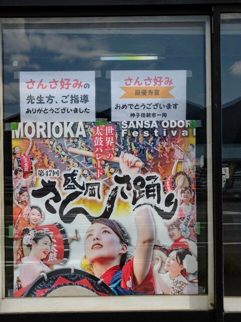朝市のさんさ踊の先生に対するお礼の貼紙も素敵でした。