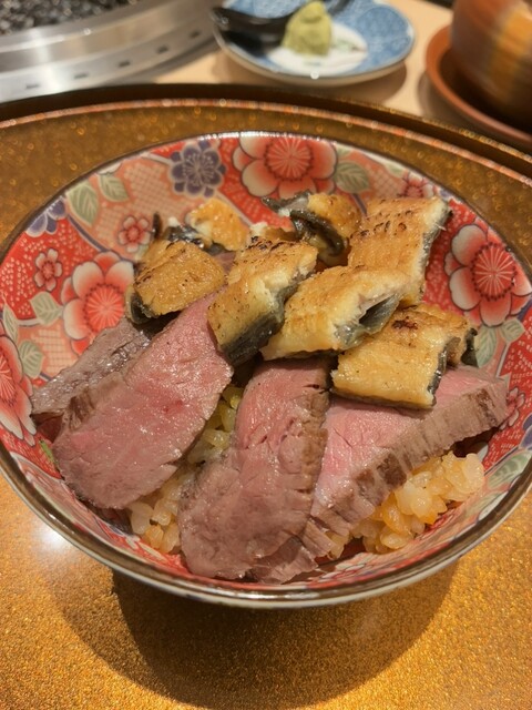 ■ 和牛と鰻のひつまぶし 和牛と鰻の存在感が圧巻。 そのままでも十分美味しいですが、 出汁をかけてわさび・山椒とともにいただくと、 さらりと食べ進められます。