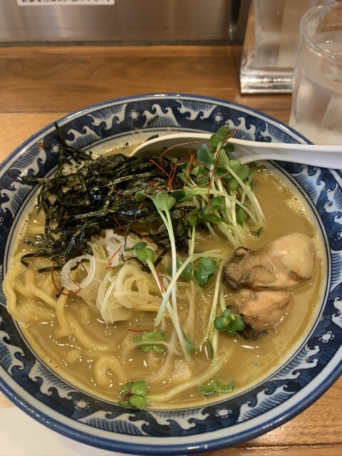 牡蠣らあめんをいただきました。初めての牡蠣のお出汁のラーメンでどんな感じなんだろうと思っていました。とても濃厚で牡蠣の味がしっかり出てて美味しかったです。息子と一緒に行きましたが、よくラーメンを食べてる息子もすごく美味い!と大絶賛でした。牡蠣も2つも入っていて大満足です。また行きたいです。