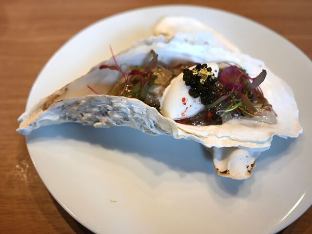 牡蠣は日間賀島の生のりなどを使用したジュレに酒粕のアイスを乗せるなど食べたことがない組み合わせの妙。