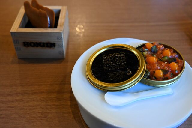 Honjinさんの素晴らしい点は、料理の提供ペースへの細やかな配慮です。スタートが同時でも、各々の食べるペースに合わせて料理を出してくださいます。食べるペースはいつも遅めなのですが、隣のお客さんはさらにゆっくりとしたペースでした。そのおかげでしょうか、メニューにはないお口直しの一皿をご提供いただき、嬉しいサプライズでした。タコ、マンゴー、シャーベットにスッポン出汁という、もはやお口直しの範疇を超える、贅沢な一品でした。