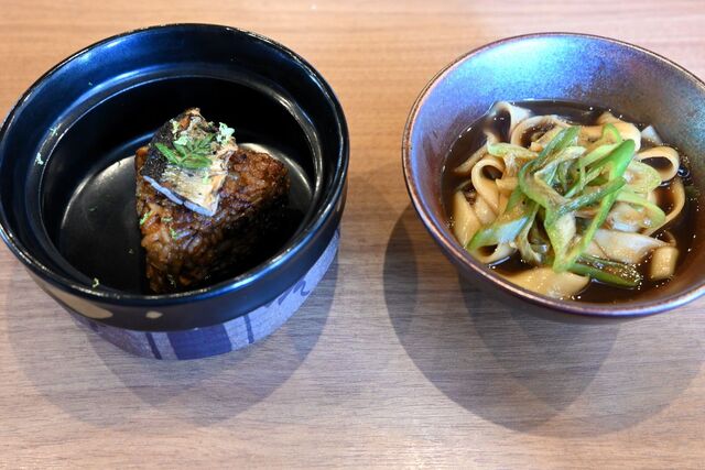 そして〆には、焼きおにぎり、きしめん、ガーリックライスの3品から希望を聞かれ、全てお願いすることも可能とのこと。3品全ていただきました。ガーリックライスは、いつも鉄板席から漂ってくる食欲をそそる匂いに、いつか食べてみたいと思っていたので、嬉しいサプライズでした。中でも、桜海老の出汁がきいたきしめんが、特に好みでした。
