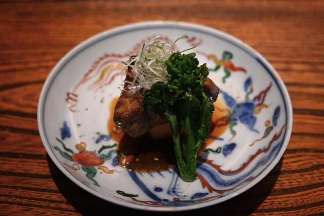 冬の王道と洗練: 氷見の寒鰤を向付けに、そして淀大根との鰤大根に。異なる仕立てで味わう贅を。照り焼きにした鰤と煮含めた大根を合わせ、炭火の香りと山椒を効かせる手法に、確かな手仕事と構成の妙を感じます。これまでにない新しい表現もまた、新鮮な驚きでした。