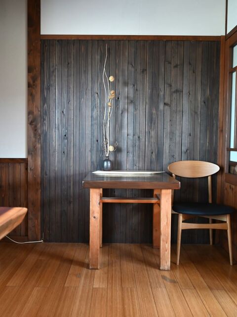 店内に入ると一部が吹き抜けで薪ストーブの煙突が伸びており実際に寒い季節には使われている模様。ホームページを拝見すると実家の一軒家のカフェを改装し、自家菜園付きのレストランとして開業したようです。案内された席は靴を脱いであがる一段高くなったフローリング仕様で個室感もあり寛げます。お客さんは3組6名でした。