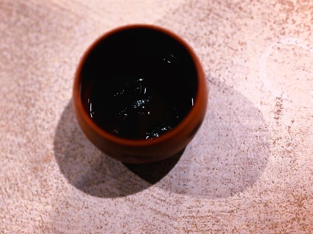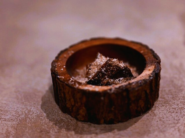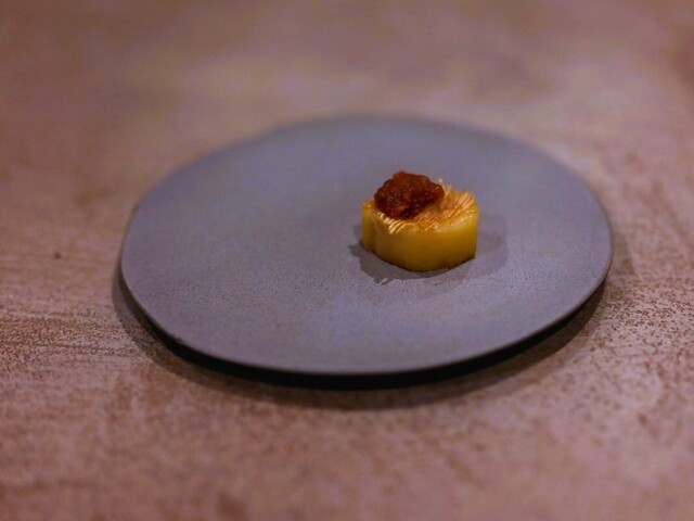 シェフは元々はお菓子職人。フランスに行った時にお菓子のみでは雇ってもらえず料理にも興味があったため学んだそうです。またルームメイトが北欧の方で日照時間の少ない地方ならではの発酵食品に触発され、日本従来の素晴らしい醸造文化を思い出し、地域の伝統料理も提供されます。熱源に関しても感化されガスを引かず薪と炭での調理。
