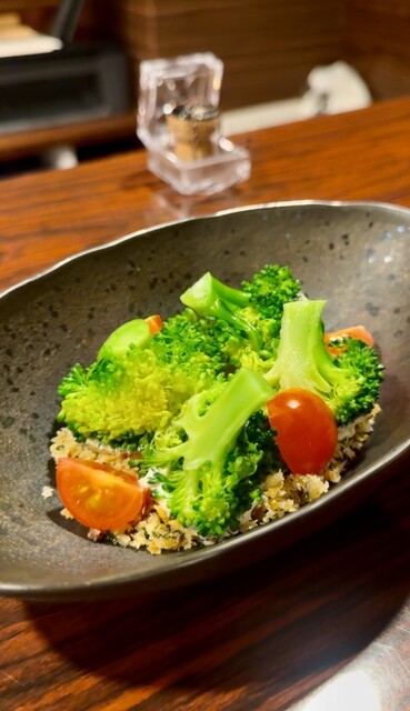 滋賀県産「にこまる」を使用し、粒感をしっかり感じられる贅沢なおむすび。お肉といくらの組み合わせが最高で、〆にぴったり!