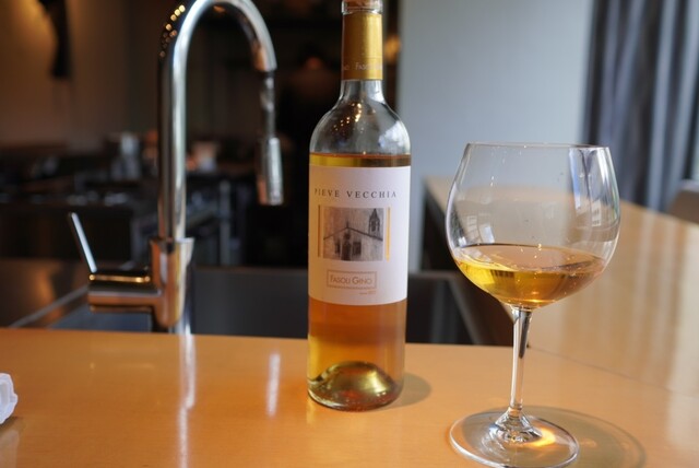 2杯目はイタリアベネトの白(こちらは新たに開栓して頂いたものです)でした。色の濃い白ワインでしたが、樽の色が移ったとのことです。余韻を感じられ若干甘みも感じますが、とても良いワインなのではないかと思いました。私は好きなワインです。