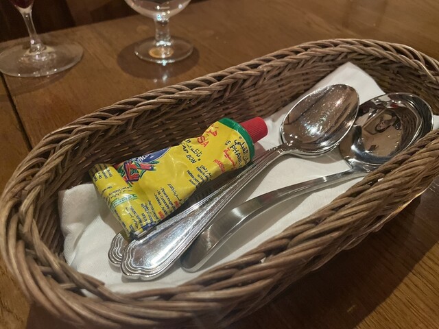 一緒にお出しいただいたチューブも辛味は、胡椒、マスタードや唐辛子などと全く種類の違う辛さで初めていただきました。羊肉系と相性がよく、味変にもなり良かったです。食べ終わりには身体がポカポカしてきました。