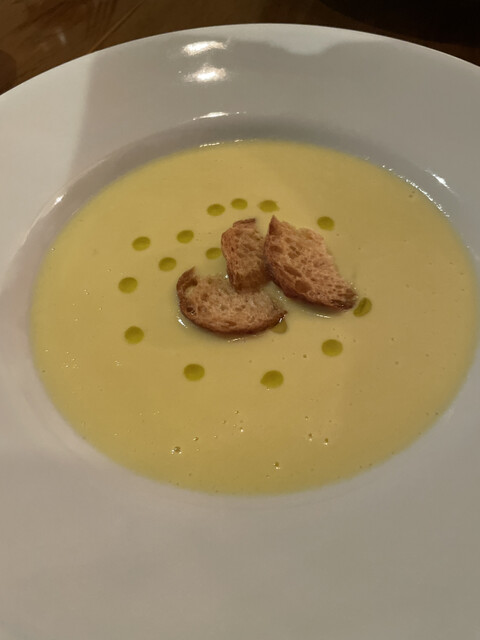 とうもろこしのスープはコーンの甘味をとても優しく表現されたスープです。老若男女が楽しめるスープでした。