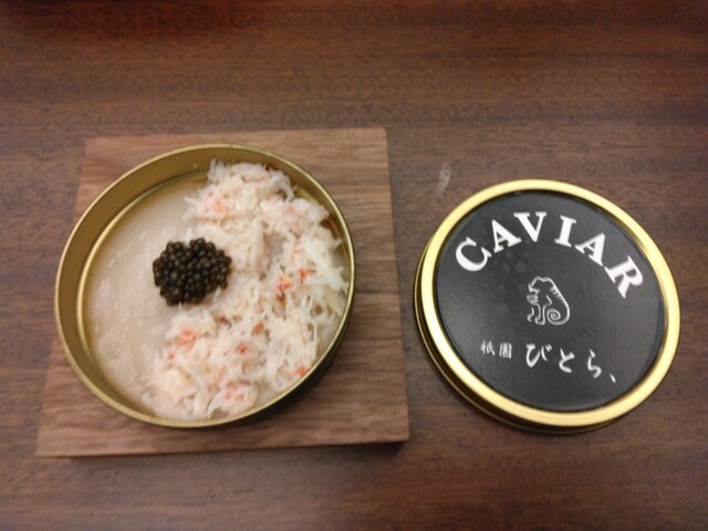キャビアなどはお店専用の容器があり、演出もひとつひとつこだわりを感じます。