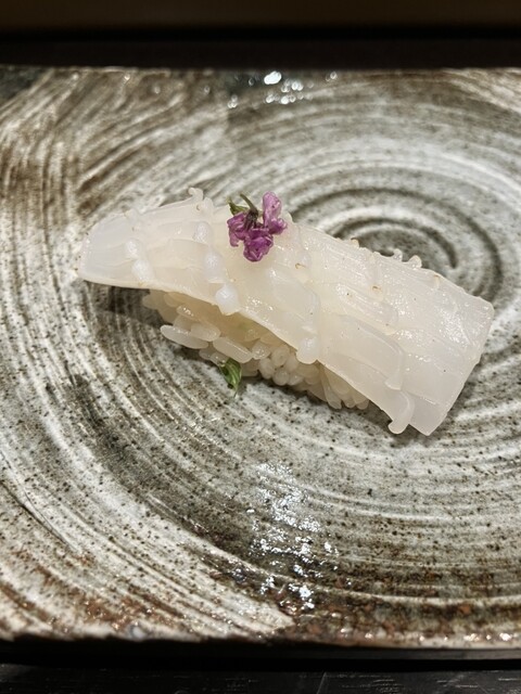 縞鯵、帆立炙り、赤海老昆布〆、赤身漬け