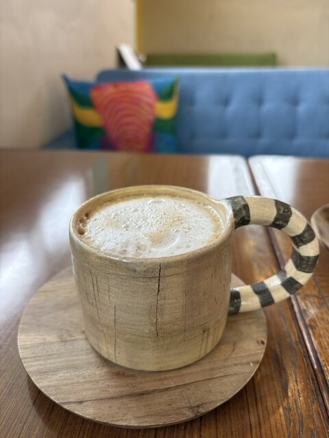カフェオレ 器はしましまぽたりさんのもの 店内に販売あり