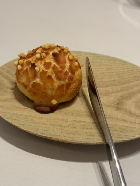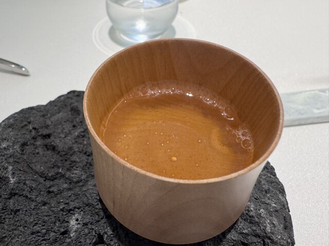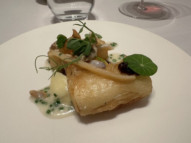 ジュワと口内で弾けるムール貝の火加減。パートフィロとの食感の違い、トロトロの貝出汁のソースと白エビとキャビア、ジューシーでリッチな旨味。重ねているのに重さはなく繊細で美味です♡