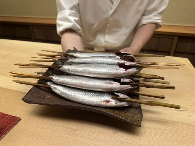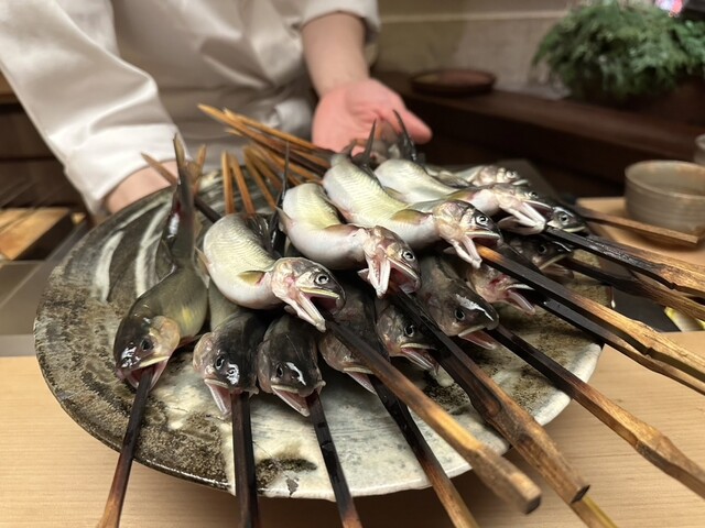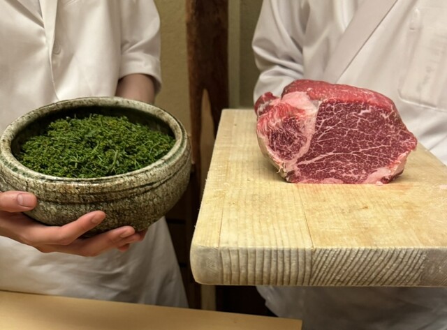 三重県産伊勢海老、滋賀県産もろこ、巨大な赤貝、鰻、シビ鮪、蟹、白甘鯛、ばちこ、フグの白子、鱈、堀川牛蒡などの京野菜、佐賀県の無農薬栽培のお米などと