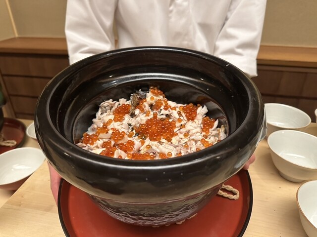 北海道の香箱蟹の真薯 上御霊神社の井戸水を使った昆布と鰹の吸い地
