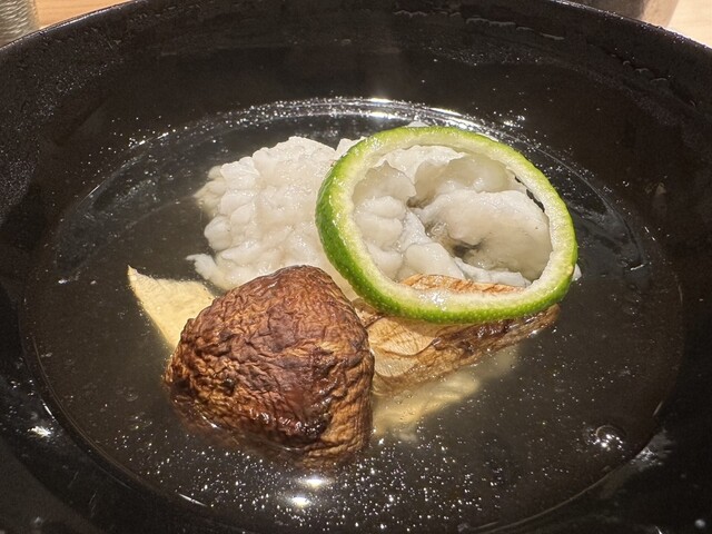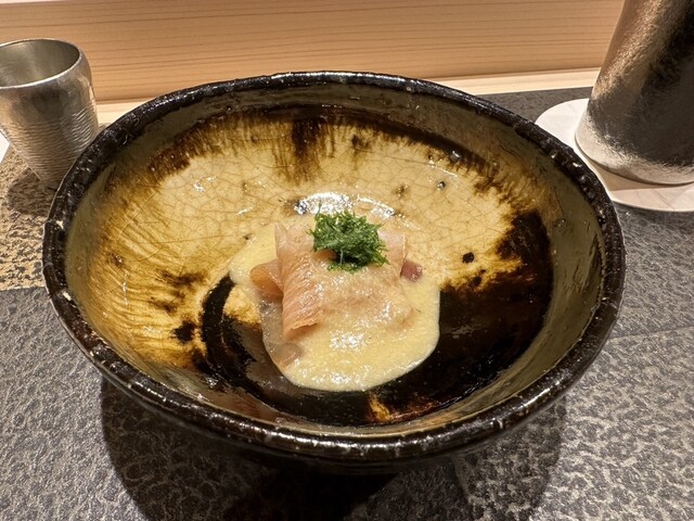 蛤の上品な出汁、塩分も程よく全身に沁み渡る味です。木枯らし吹く今夜にぴったりの先付でした。
